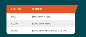 - 首次入金特惠:贈送您入金金額的50%,最高可達500美元!